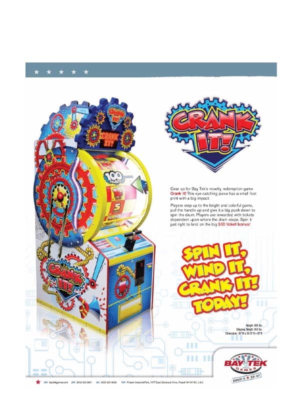 With the same great qualities as the ever-popular Big Bass Wheel, Crank It is a sure hit for game rooms of every size.